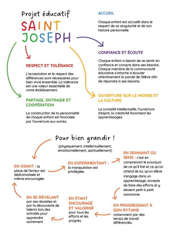 L’école Saint Joseph est une école privée, sous tutelle de la direction diocésaine. Elle accueille entre 80 et 90 élèves de la toute petite section au CM2, au sein de 4 classes.