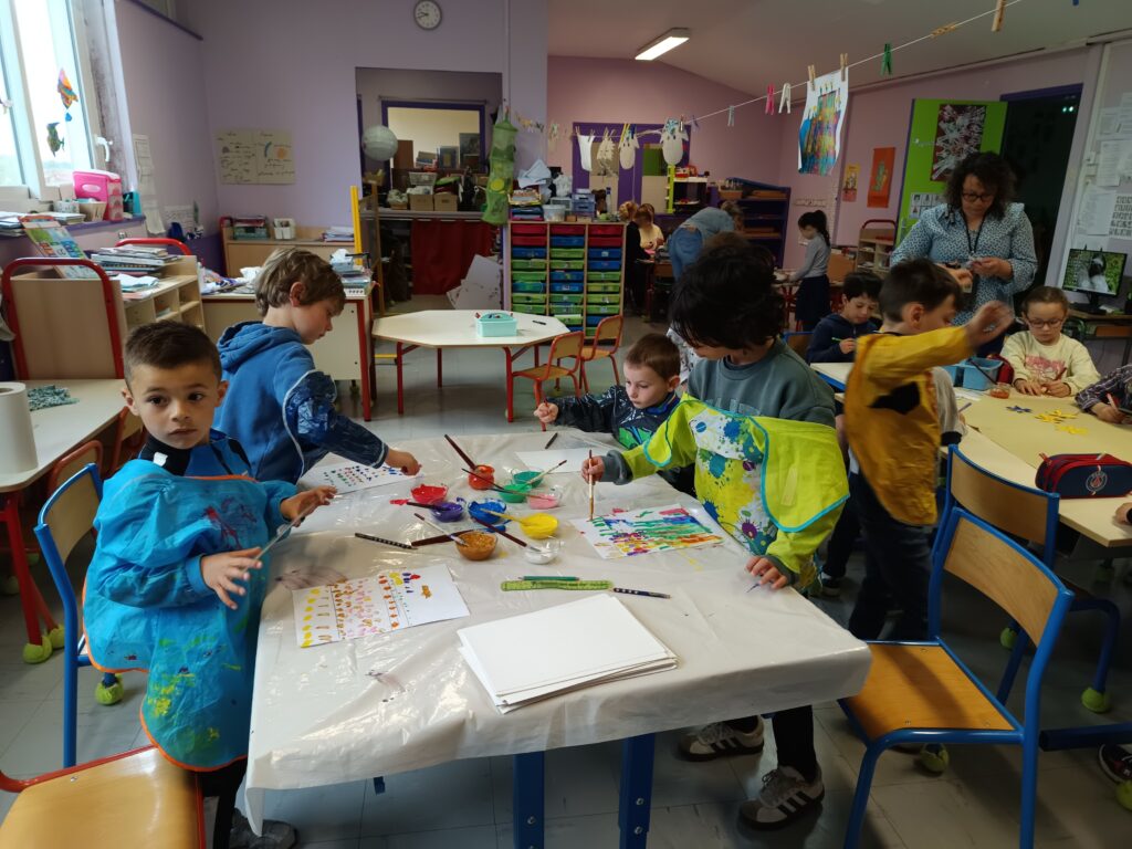 Plusieurs mamans ont généreusement donné de leur temps pour accompagner les enfants dans des créations originales autour du nombre 100. Au programme : réalisation d’affiches composées de 100 bonhommes animés, un paon aux 100 empruntes, collages créatifs de fleur et de mains, ou encore œuvres collectives mêlant différentes techniques de peinture : les gâteaux et le nombre 100. Ces ateliers ont permis aux élèves d’exprimer leur créativité tout en respectant une consigne numérique, alliant ainsi art et mathématiques.