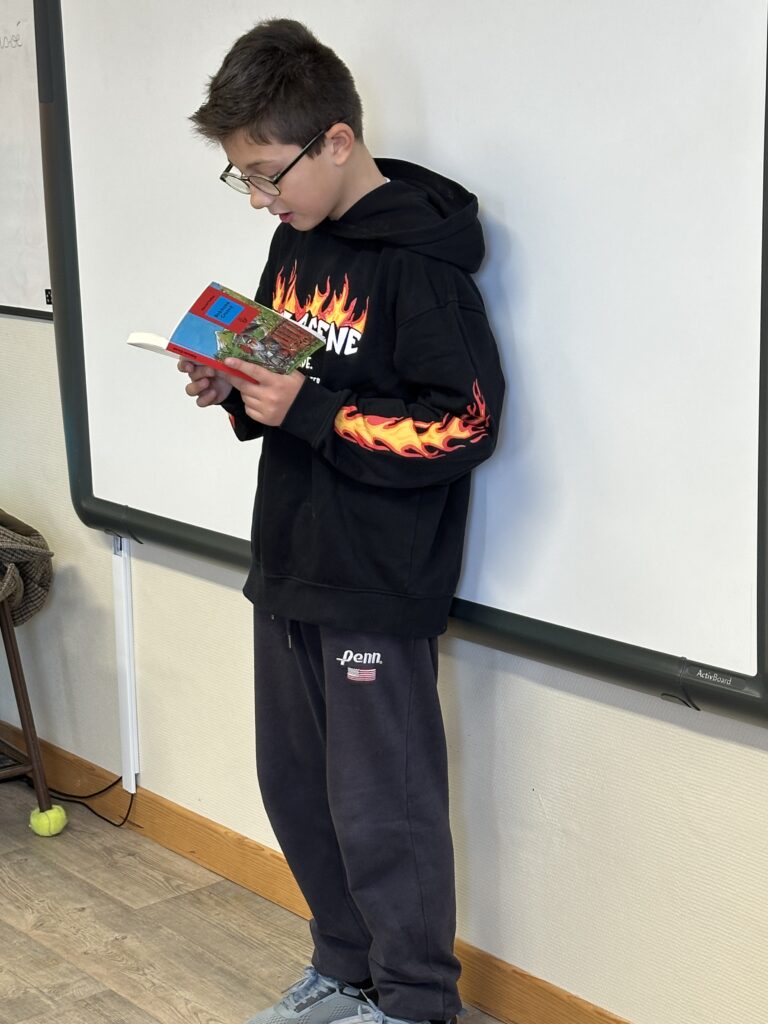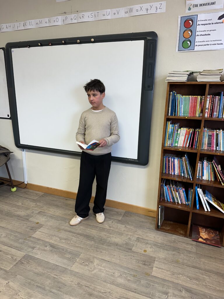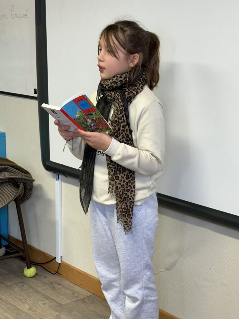 Mardi 20 janvier, a eu lieu la finale de notre école. Tous les enfants avaient bien préparé leur lecture en s’entraînant pendant plusieurs semaines. Grâce à leur investissement et leur enthousiasme, nous avons pu constater de très beaux progrès depuis les premiers essais. Très motivés le jour J, ils ont tout donné devant un « grand » jury : les CM, les CE1 et CE2 ainsi que 4 adultes ! C’était très impressionnant pour eux mais tous sont parvenus à surmonter leur stress et chacun a grandement mérité ses applaudissements !